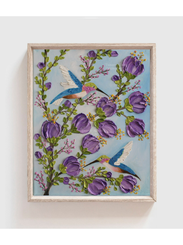 Custom Hummingbird and Lavender Flowers Impasto Painting, Hummingbird Oil Painting, Bird Painting